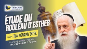 338:57 Grande journée d’étude sur le rouleau d’Esther avec les commentaires – Par Rav Gérard Zyzek 📅 March 5, 2025 👁 420 Rediffusion de la grande journée d'étude de préparation à Pourim le 2 Mars 2025. Étude…