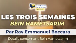 23:08 Les trois semaines, règles de Bein Hametsarim (Deuxième édition) 📅 July 29, 2024 👁 170 Thème : Lois et détails concernant la période de Bein Hametsarim. Par Rav Emmanuel Boccara…