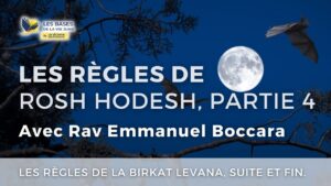 19:05 Les règles de Rosh Hodesh, partie 4, suite et fin. 📅 January 18, 2023 👁 87 Sujet : Les règles de la Birkat Levana (Bénédiction sur la lune), suite et fin.…