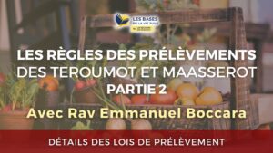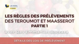 18:12 Les règles des prélèvements de Teroumot et Maasserot, partie 1 📅 January 26, 2023 👁 83 Sujet : Détails des lois de prélèvement. Le 26 Janvier 2023 Par Rav Emmanuel Boccara…